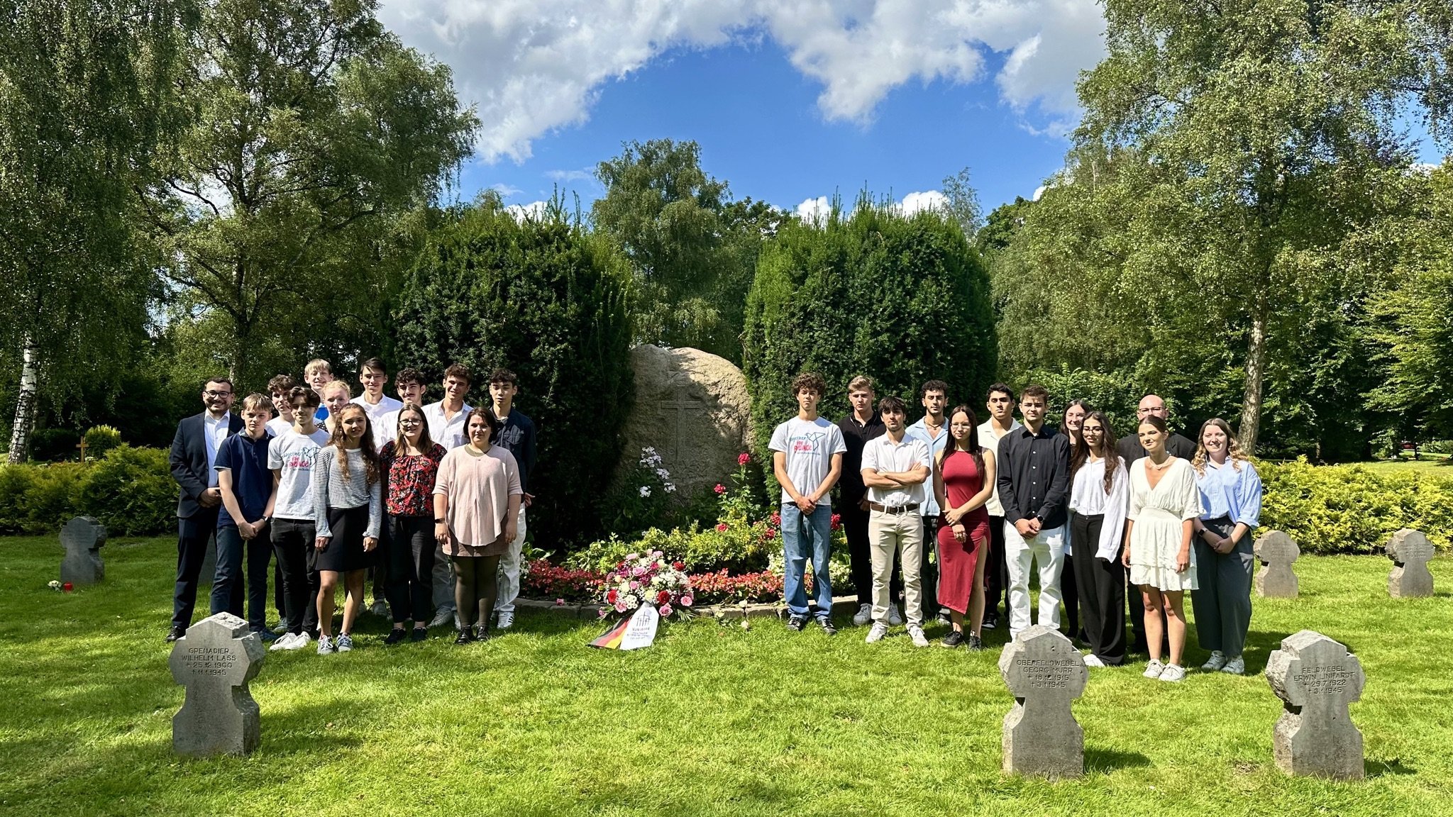 Wir freuen uns, Ihnen berichten zu können, dass die Gedenkveranstaltung als Abschluss des Workcamps Flensburg auf dem Friedhof Friedenshügel in Flensburg ein voller Erfolg war! Teilnehmerinnen und Teilnehmer aus sieben verschiedenen Nationen stellten ein beeindruckendes Programm für die Abschlussveranstaltung zusammen, das alle Anwesenden tief berührte.