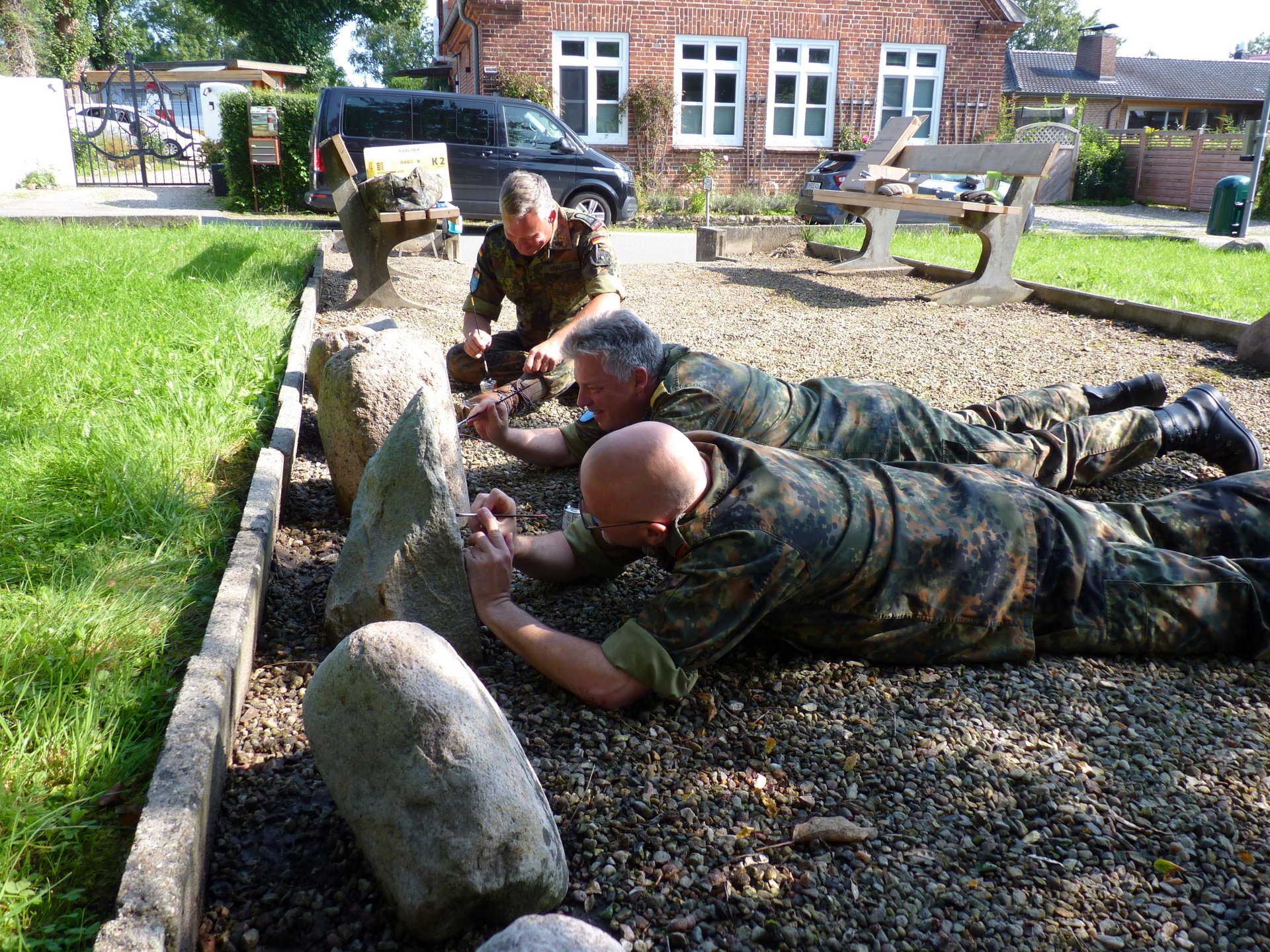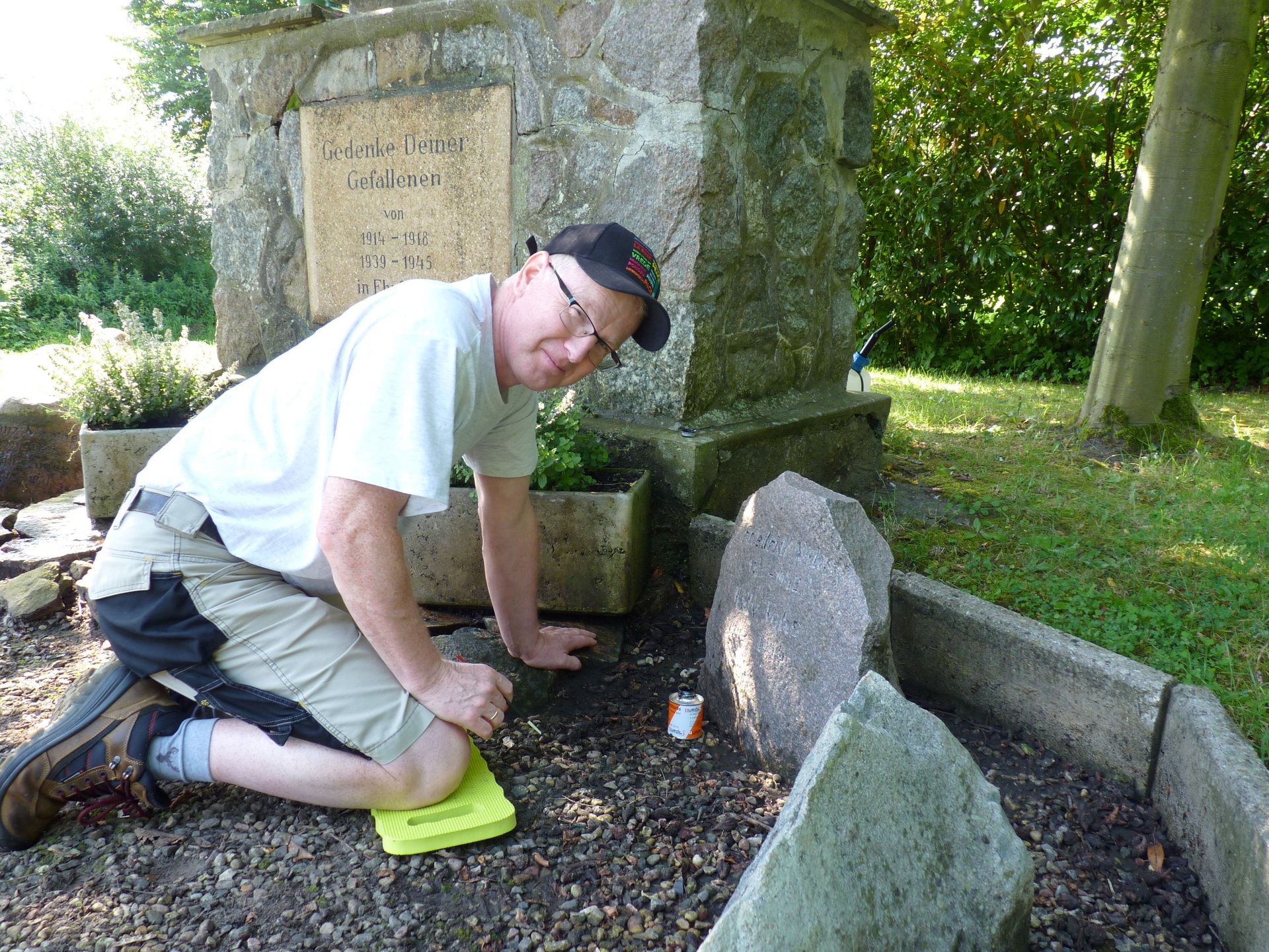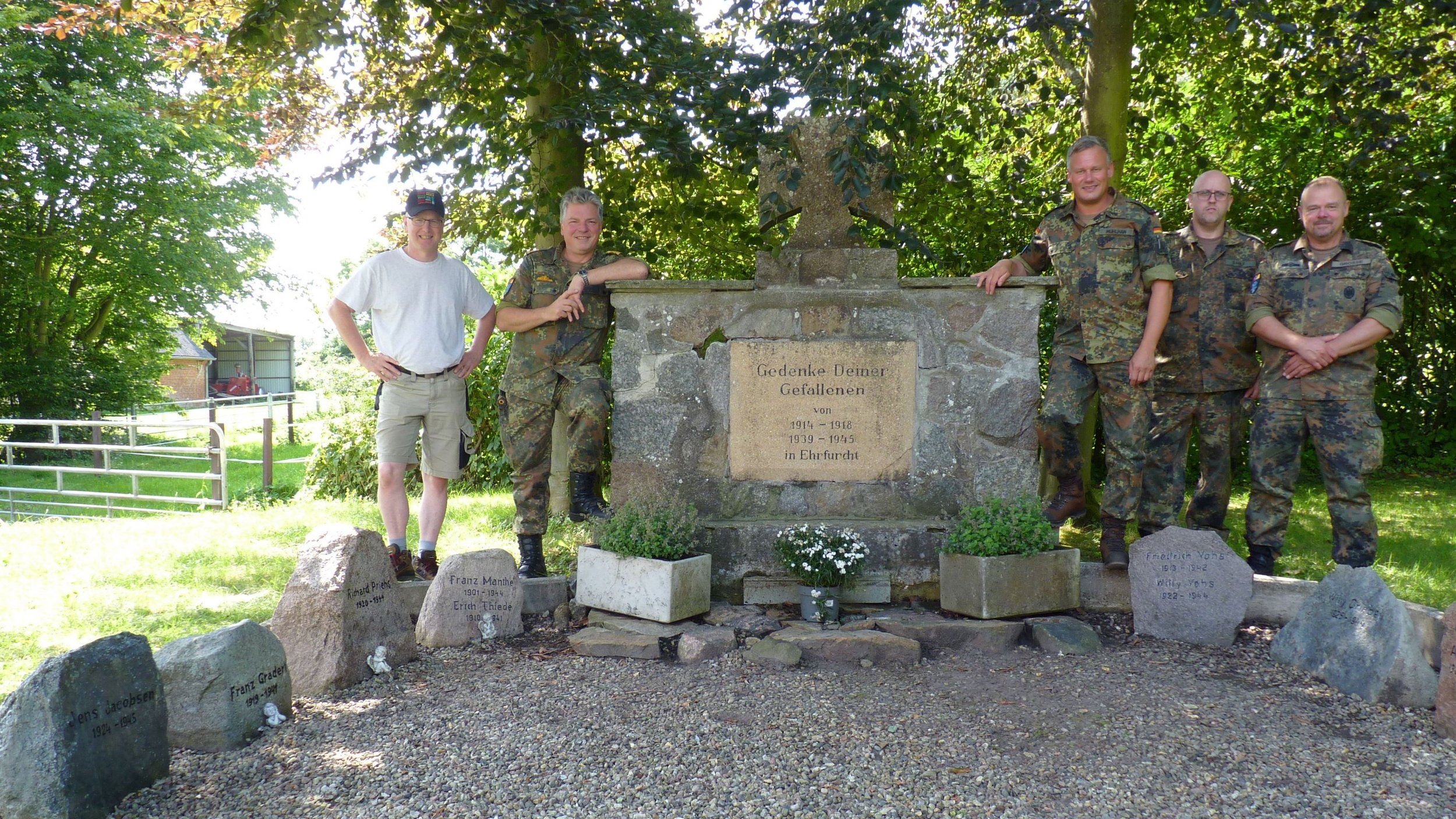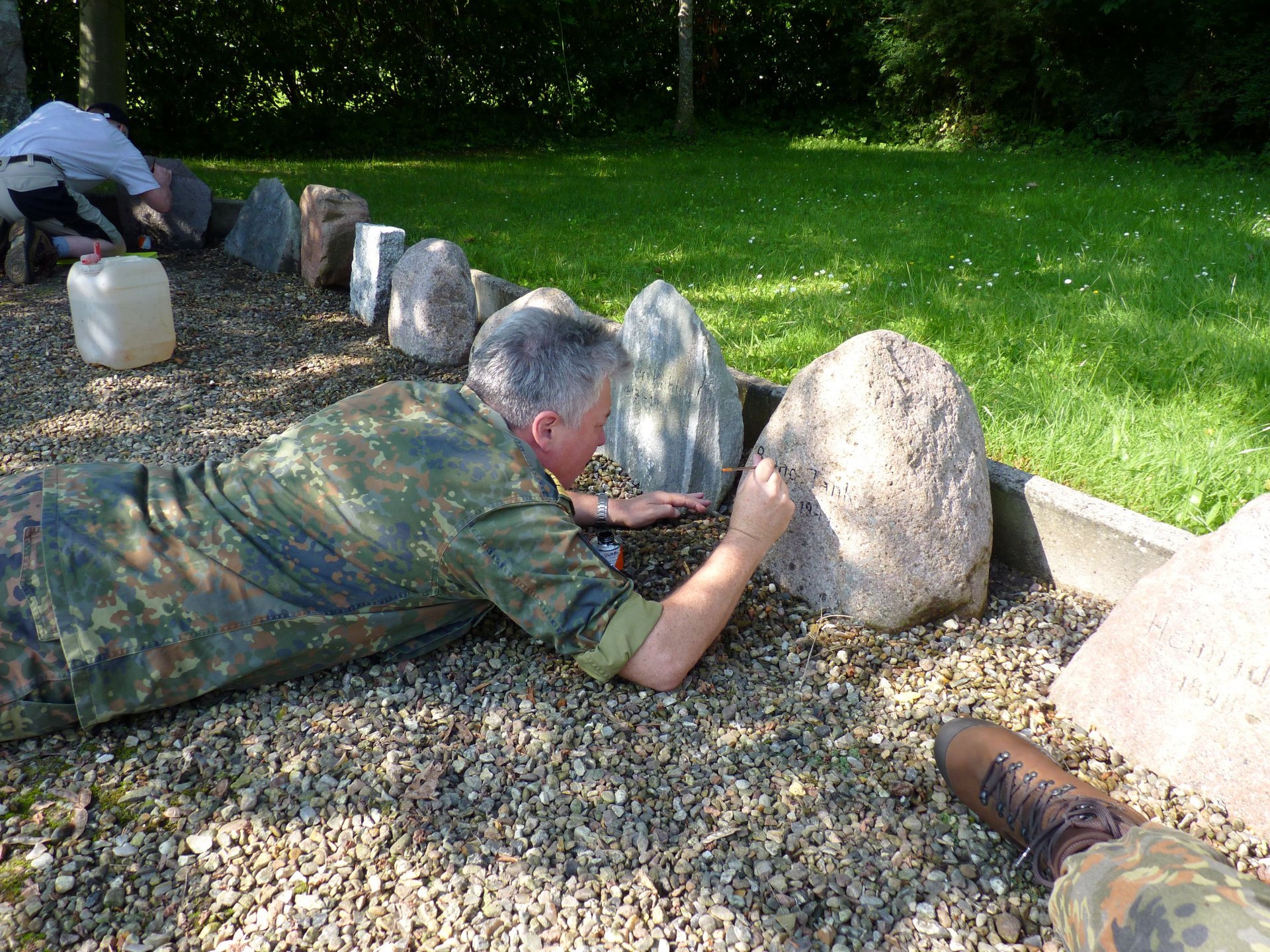 Am Samstag, dem 9. August 2025, waren Kameraden der Reservistenarbeitsgemeinschaft (RAG) Kriegsgräber erneut in der Gemeinde Wangels im Einsatz. Die Dorfgemeinschaft Grammdorf hatte um Unterstützung gebeten, da die Inschriften der Gedenksteine der örtlichen Gedenkstätte kaum noch lesbar waren.