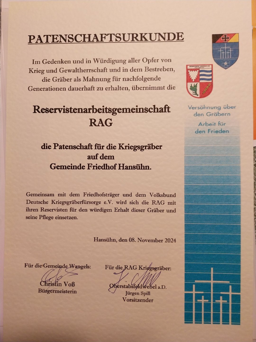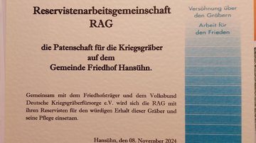 Am Freitag, 8. November hat die RAG Kriegsgräber eine Patenschaft für die Kriegsgräber auf dem Gemeindefriedhof in Hansühn übernommen.